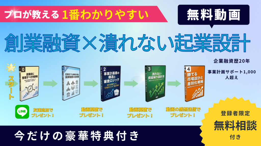 これらの動画を見るだけで、創業融資に必要な知識の80%が身につきます。