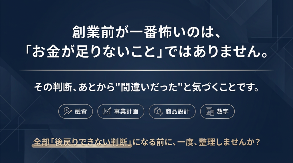 創業前が一番怖いのは、「お金が足りないこと」ではありません